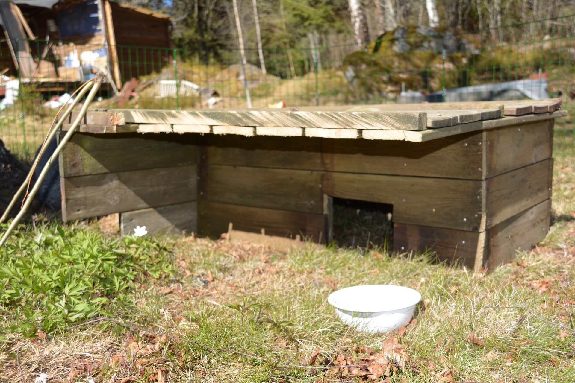 Hoppsan mår riktigt bra nu och idag har han fått vara ute ”på egen hand” (vi höll oss i kulisserna och hade koll på honom så han höll sig på tomten). Kojan jag snickrat var väl ”sådär” intressant men jag är i alla fall nöjd med resultatet.